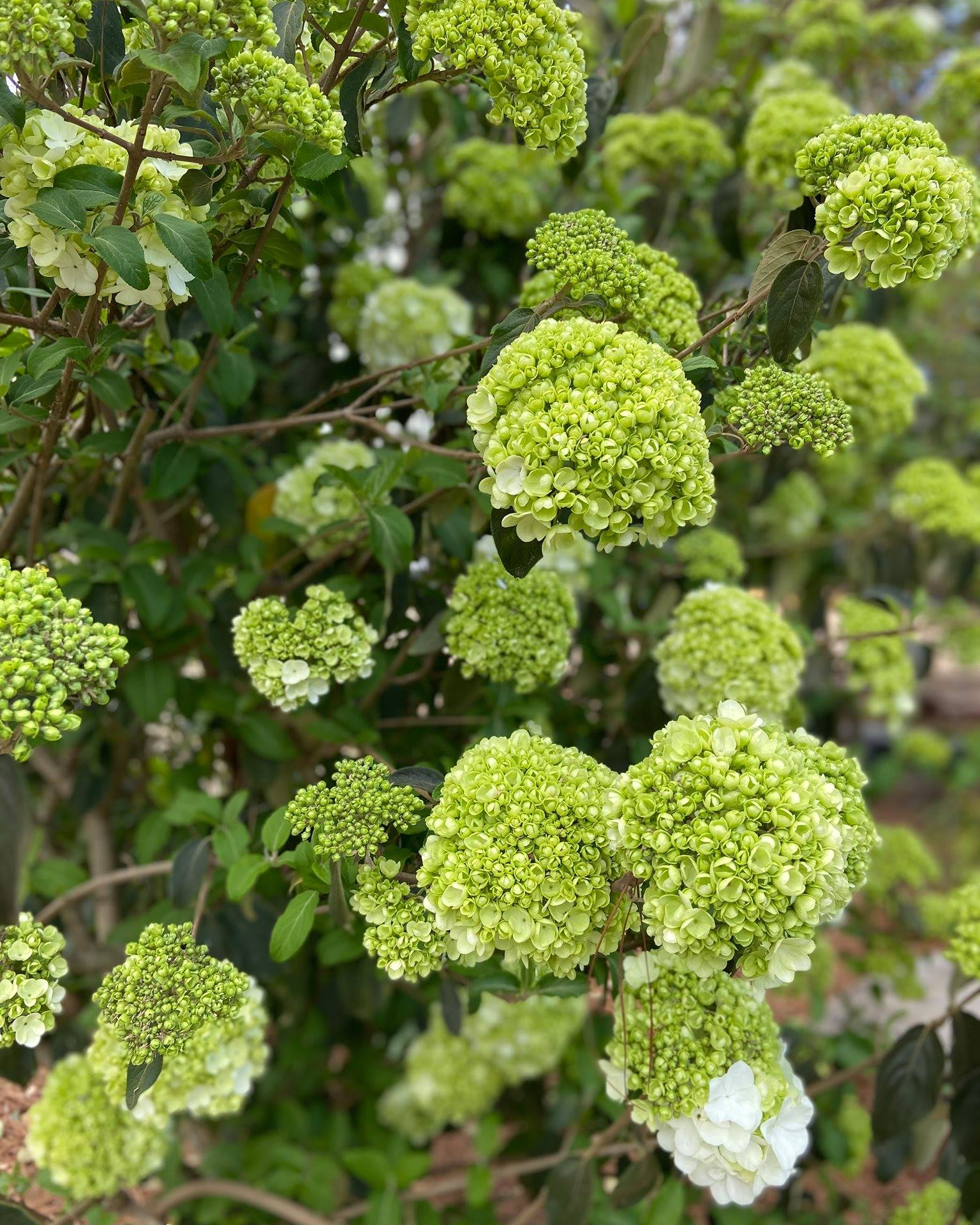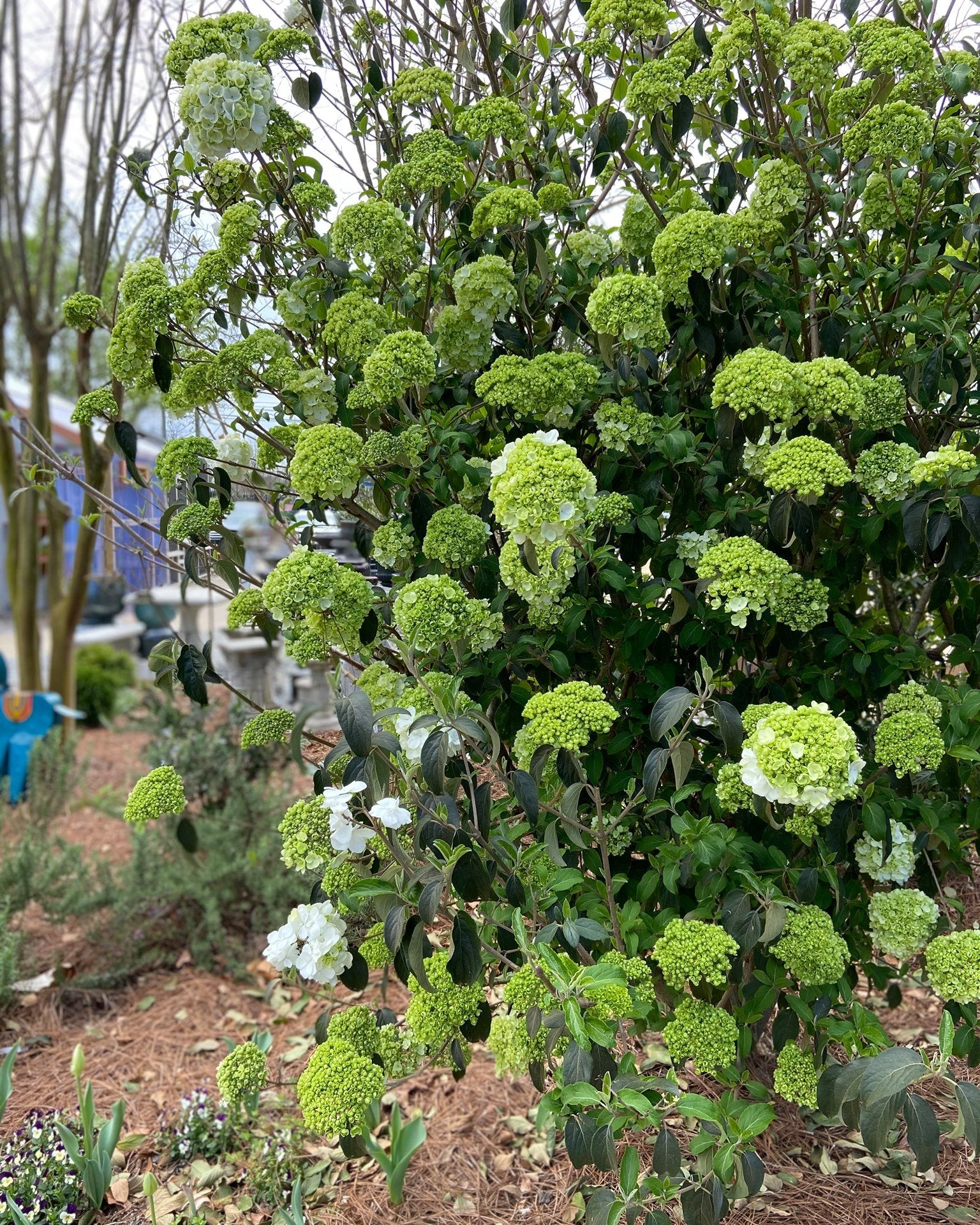 Big, bold, and beautiful! This Southern favorite covers itself in giant round clusters of blooms that start light green and turn pure white. You’ll see the main show in spring and often a surprise encore in late summer.